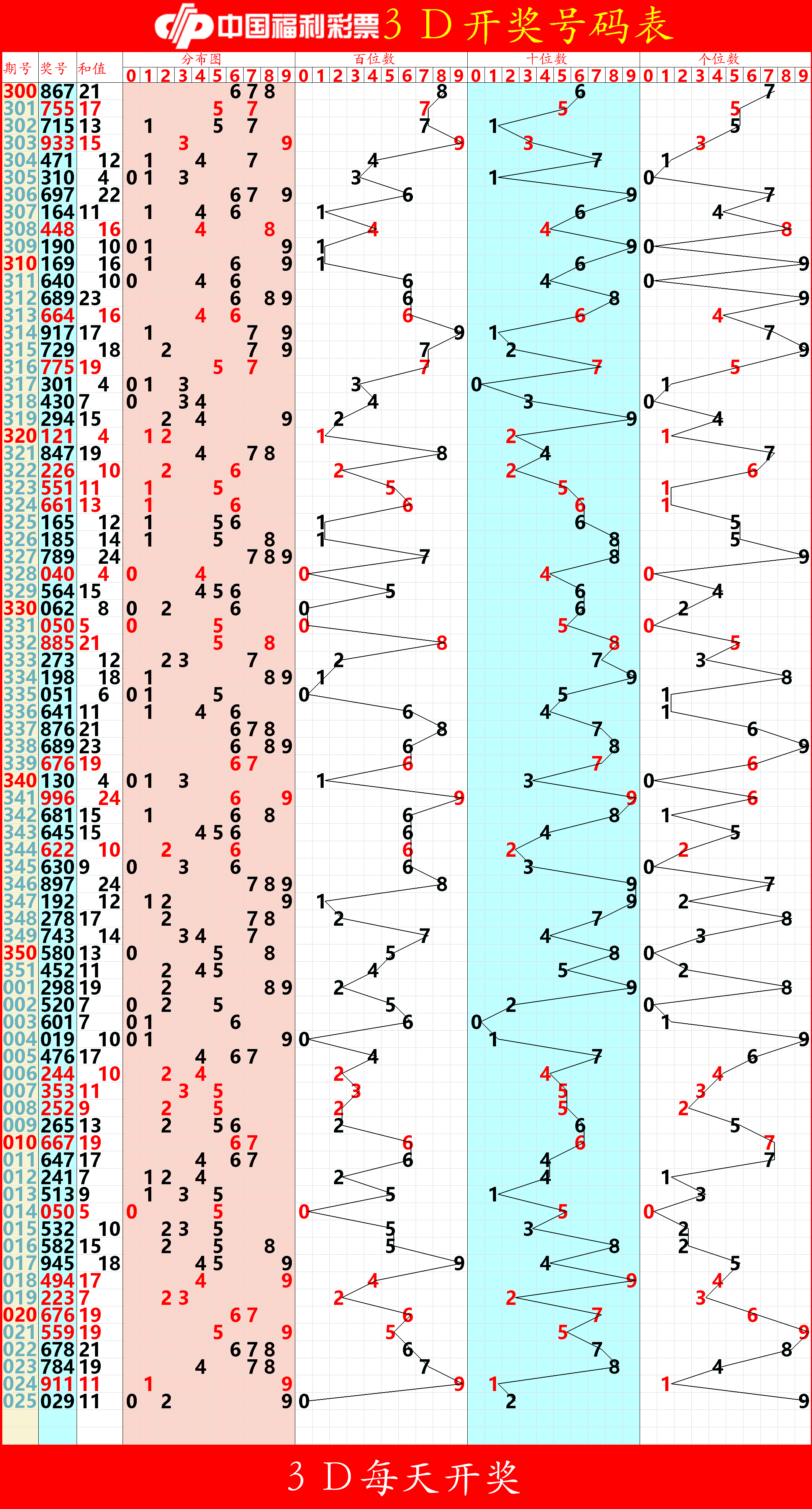 025期★甜馨3D★七码【1345679】=23 开