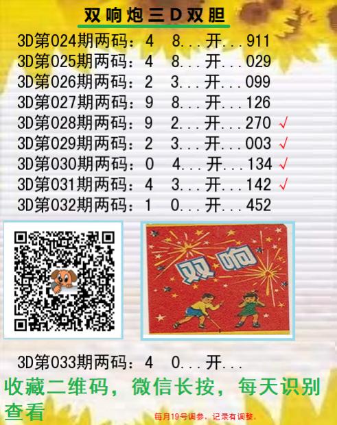 032期红姐不出百位3 对