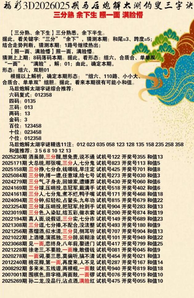【3D】025期正 版 藏 机+新 版 藏 机+乐 透 乐 诗 谜
