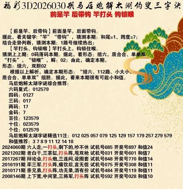 030期3D乐透乐诗谜