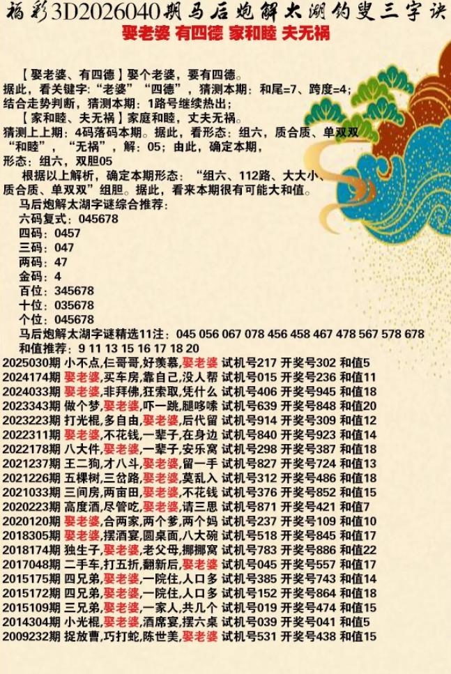 040期3D乐透乐诗谜