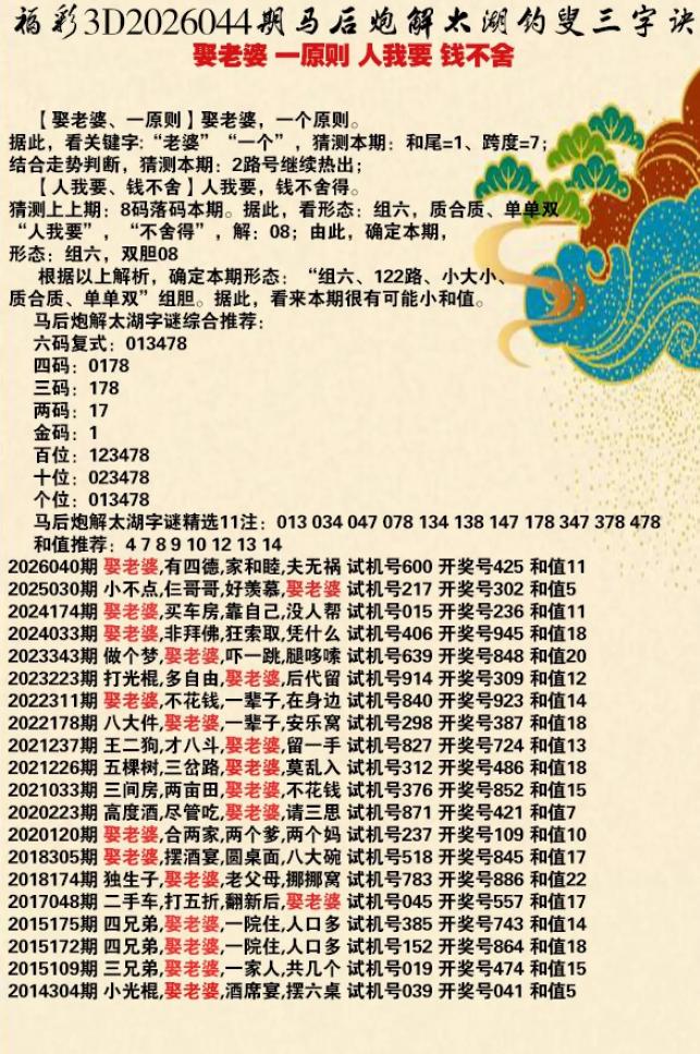 044期3D乐透乐诗谜