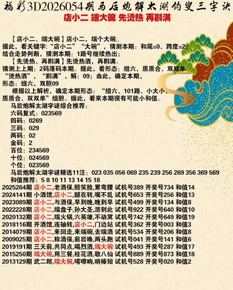 054期3D乐透乐诗谜