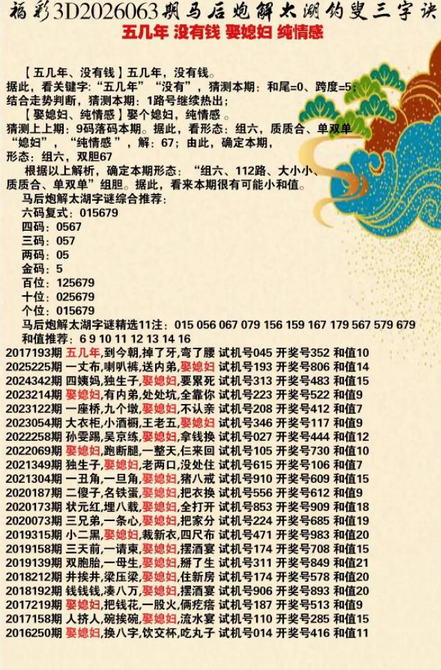 063期3D乐透乐诗谜