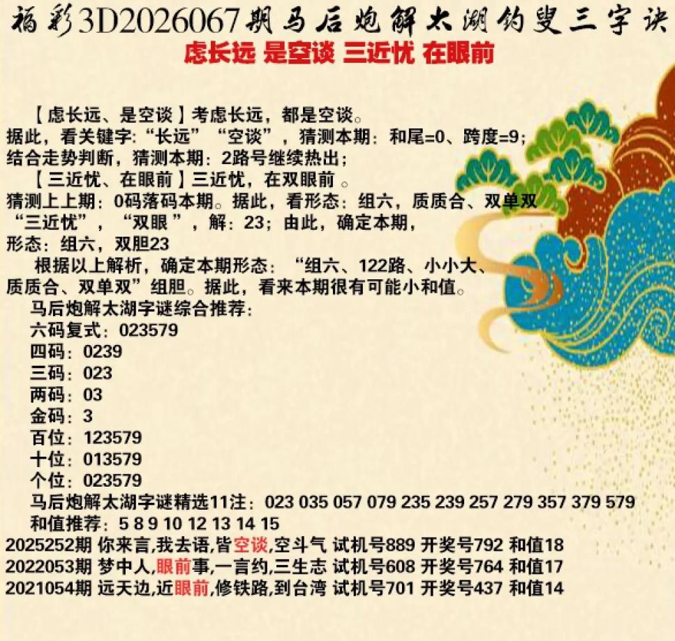 067期3D乐透乐诗谜