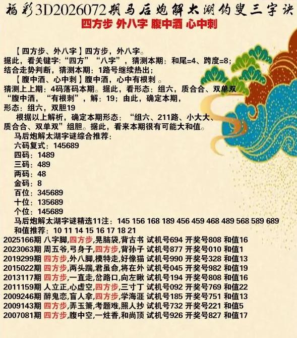 072期3D乐透乐诗谜