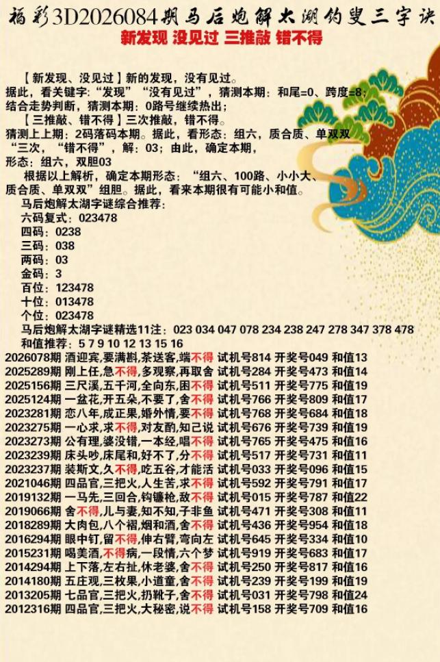 084期3D乐透乐诗谜
