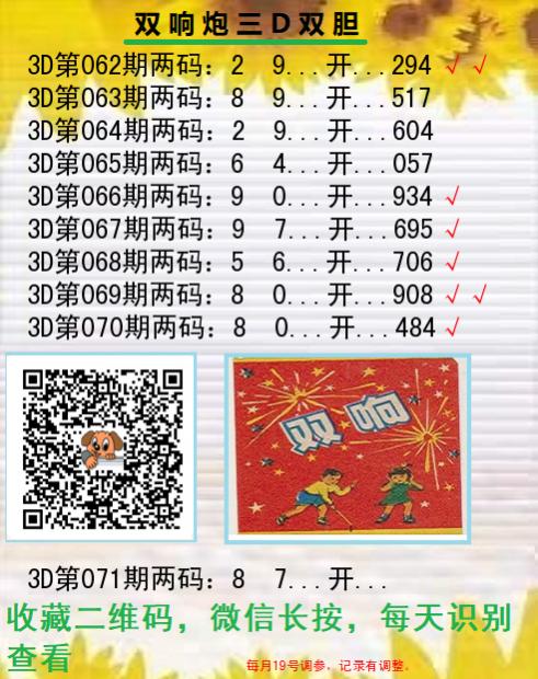千禧3D试机号26年071期:658关注数593金码9